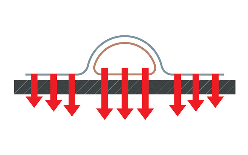 Les performances des panneaux ACTIsteel sont optimisées grâce à des tubes en cuivre aplatis dans lesquels circule l’eau, pour un échange optimal avec la surface du panneau. Un isolant thermo-acoustique assure l’isolation au plafond et une finition perforée est proposée sur tous les modèles pour améliorer l’absorption acoustique.