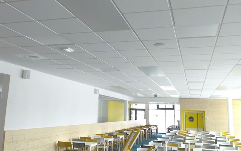 Intégrés aux dalles de faux-plafonds, faciles à installer et performants, les panneaux rayonnants métalliques sont la solution idéale pour ce projet. Pour l’architecte, le choix esthétique devait impérativement correspondre à l’environnement existant du lycée.